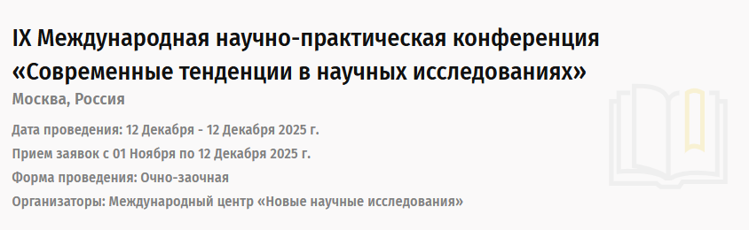 Приглашаем Вас принять участие в IX Международной научно-практической конференции «Современные тенденции в научных исследованиях», которая состоится 12 декабря 2025 года.